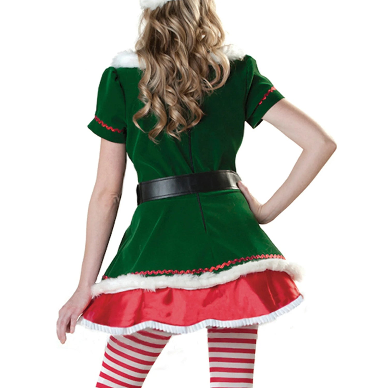 Be the buzz of the holiday party with our Holiday Honey costume! This playful ensemble features a flocked velvet dress with faux fur trim and red metallic accents, a tulle petticoat for added flair, and a hat adorned with faux fur and a jingling bell. Complete the look with striped tights, a festive belt, and shoe covers with bell accents. 'Tis the season to be stylish!
