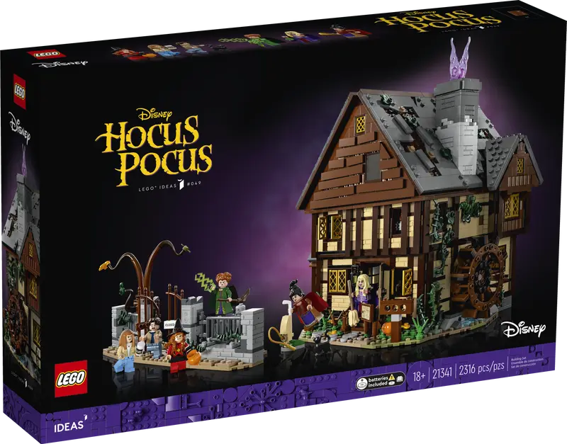 Revisit Salem and the world of the Sanderson Sisters with LEGO® Ideas Disney Hocus Pocus: The Sanderson Sisters' Cottage. This fan-inspired set is boiling over with nostalgic details from the 1993 Disney movie, Hocus Pocus.