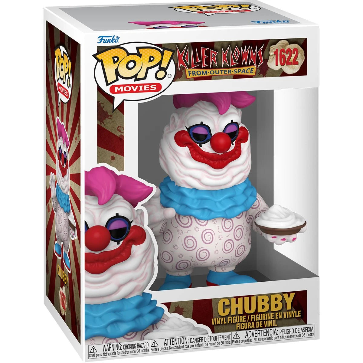 This Killer Klowns From Outer Space Chubby Funko Pop! Vinyl Figure #1622 measures approximately 3 3/4-inches tall. Comes packaged in a window display box. Ages 3 and up.