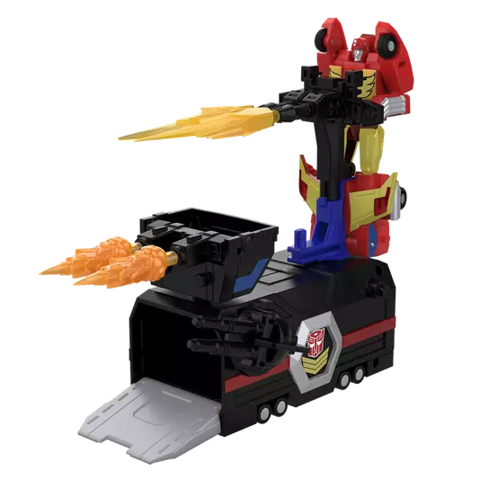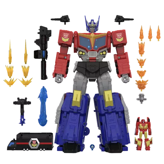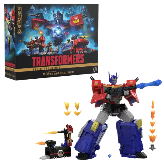 Unite your favorite characters from across the world of Transformers robots into your collection with the Transformers Age of the Primes Titan Class Star Optimus Prime action figure! This 15-inch (38 cm) The Thirteen Star Optimus Prime action figure features 3-in-1 conversion between robot, truck, and battle station modes. Includes Micromaster Autobot Hot Rod figure, MT-13 Microtrailer, tread unit, cannon blaster, shoulder blasters, ammo clip, swivel turret that becomes a blaster, Zodiac orb, and blast effects accessories. The Thirteen Star Optimus Prime figure is inspired by the Transformers universe and features articulated head, arms, and legs for awesome action poses. Transformers: Age of the Primes opens up the world of the Primes, the very first bots in Transformers mythology, a pantheon of Thirteen beings, each with a unique ability and personality. Collect different characters to create your ideal Age of the Primes lineup. (Each sold separately. Subject to availability.)