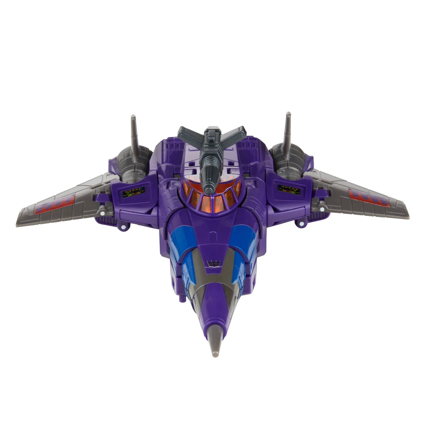 This special edition Cyclonus figure is inspired by the classic 1986 toy release and converts from robot to jet mode in 33 steps. Includes a Nightstick figure that converts from robot to blaster mode in 4 steps. Also comes with 2 blast effects and a sheet of foil labels and sticker decals to decorate the Cyclonus figure.