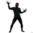 Creep out your friends with the Fade Eye Skin Shadow Demon Skin Suit Costume! This black full-body suit features glowing, fading eyes that create a spooky effect, perfect for Halloween fun. Made from 100% polyester, it ensures a comfortable fit for trick-or-treating, costume parties, or haunted houses. Batteries for the glowing eyes are included, making it ready to wear!