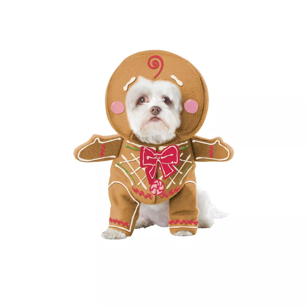 I look too sweet. The Gingerbread Pup dog costume comes with a stuffed character bib, and a hood. Costume ties around the mane and fits over the front legs.