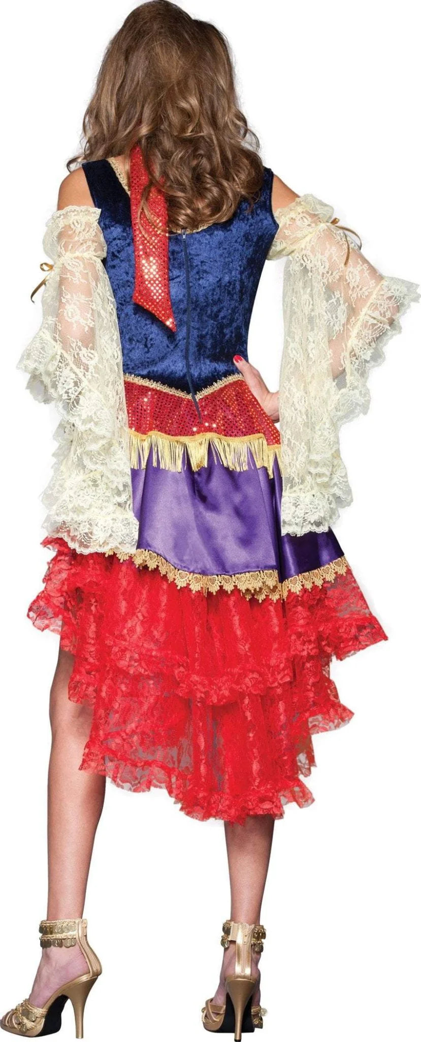 Step into the mystical realm with the Good Fortune costume—your ticket to enchanting everyone at the party. This fantasy fortune teller ensemble captures all the magic of a mysterious seer, complete with flowing fabrics and mystical details that'll have guests mesmerized. Perfect for Halloween, themed events, or anyone ready to embrace their inner oracle. Channel the cosmic energy and let your fortune-telling flair shine!