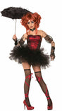 Tight Rope Walker costume includes dress, arm puffs, gloves, fishnet thigh highs with attached ribbon