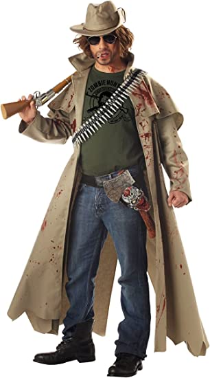 You'll be the last one standing in this Men's Zombie Hunter costume featuring a tan jacket with blood splatters